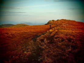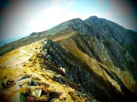 Ráno se skvěle bavíme nad nočními historkami. Dívám se ze střechy jak to vypadá venku a najednou spatřím před sebou svit čelovky. Je hodně brzo a zaráží mě, že už je někdo na cestě. Z čelovky se vyklubou dva bodří Slováci, kteří míří na hřeben sbírat brusinky. Zdrží se s námi možná déle než by chtěli, až po pár panácích hruškovice míří vzhůru. My míříme vzhůru taky, ale na opačnou stranu. Kozí chrbát. Sklon kopce nás už ničím nepřekvapuje a přes různá stoupání a klesání se dostáváme na asi poslední kopec – Kečka.
